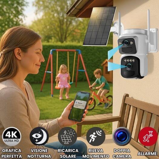 Completamente senza fili, si monta rapidamente senza bisogno di forature o cablaggi complessi, mentre la batteria integrata lavora in sinergia con il pannello solare incluso per garantirti un’autonomia eccezionale e senza interruzioni.